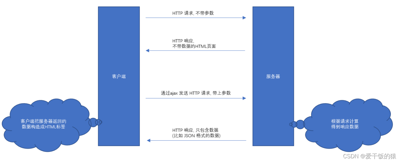 网页可以通过ajax的方式和服务器之间交互数据,网页拿到数据之后再根据数据的内容渲染到页面上。