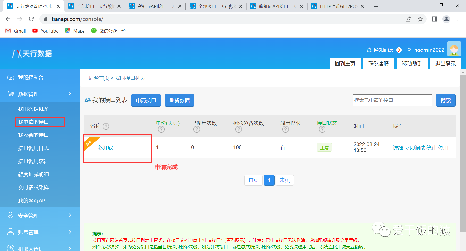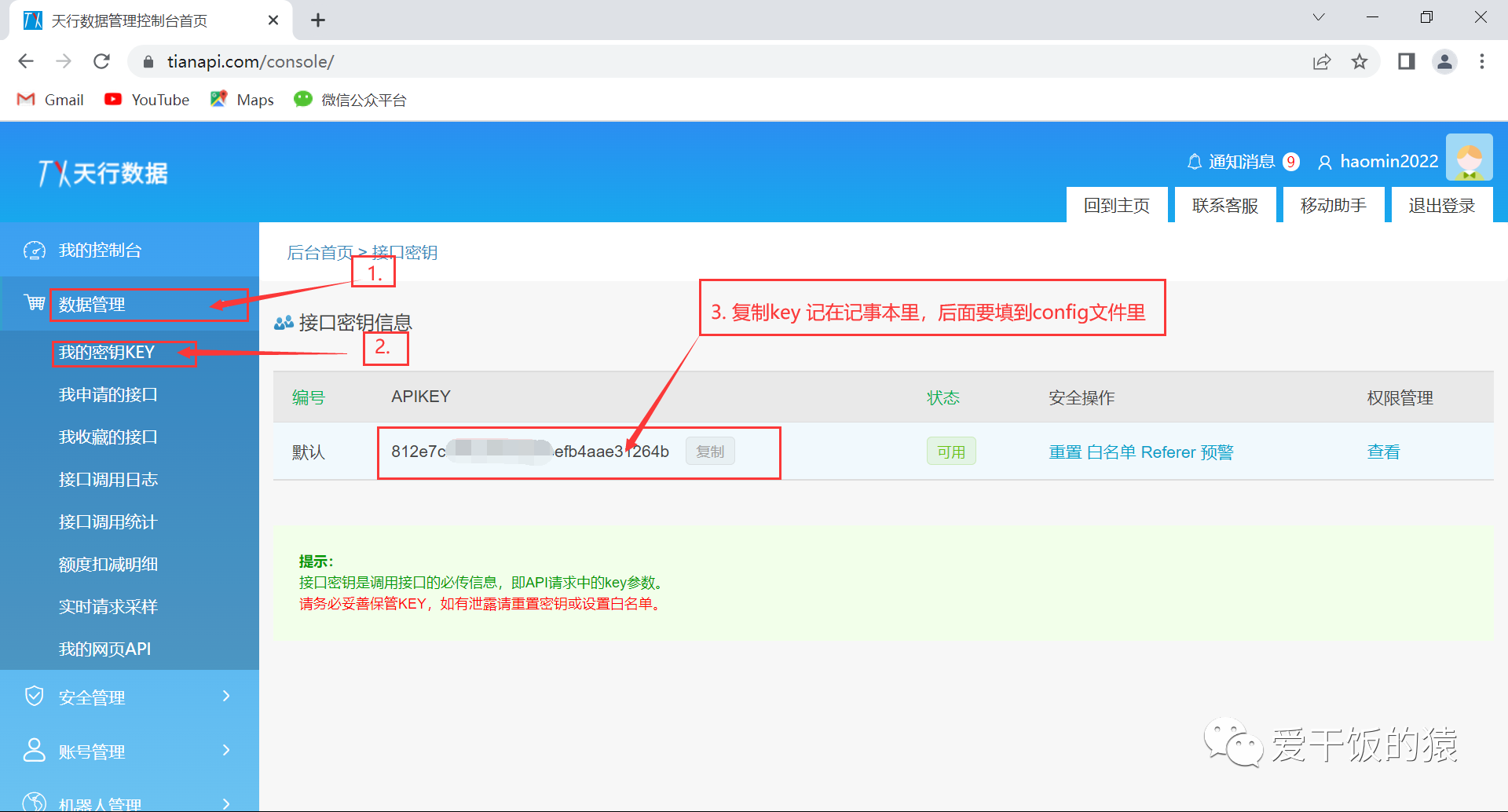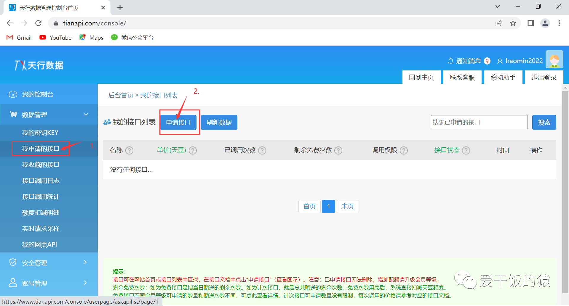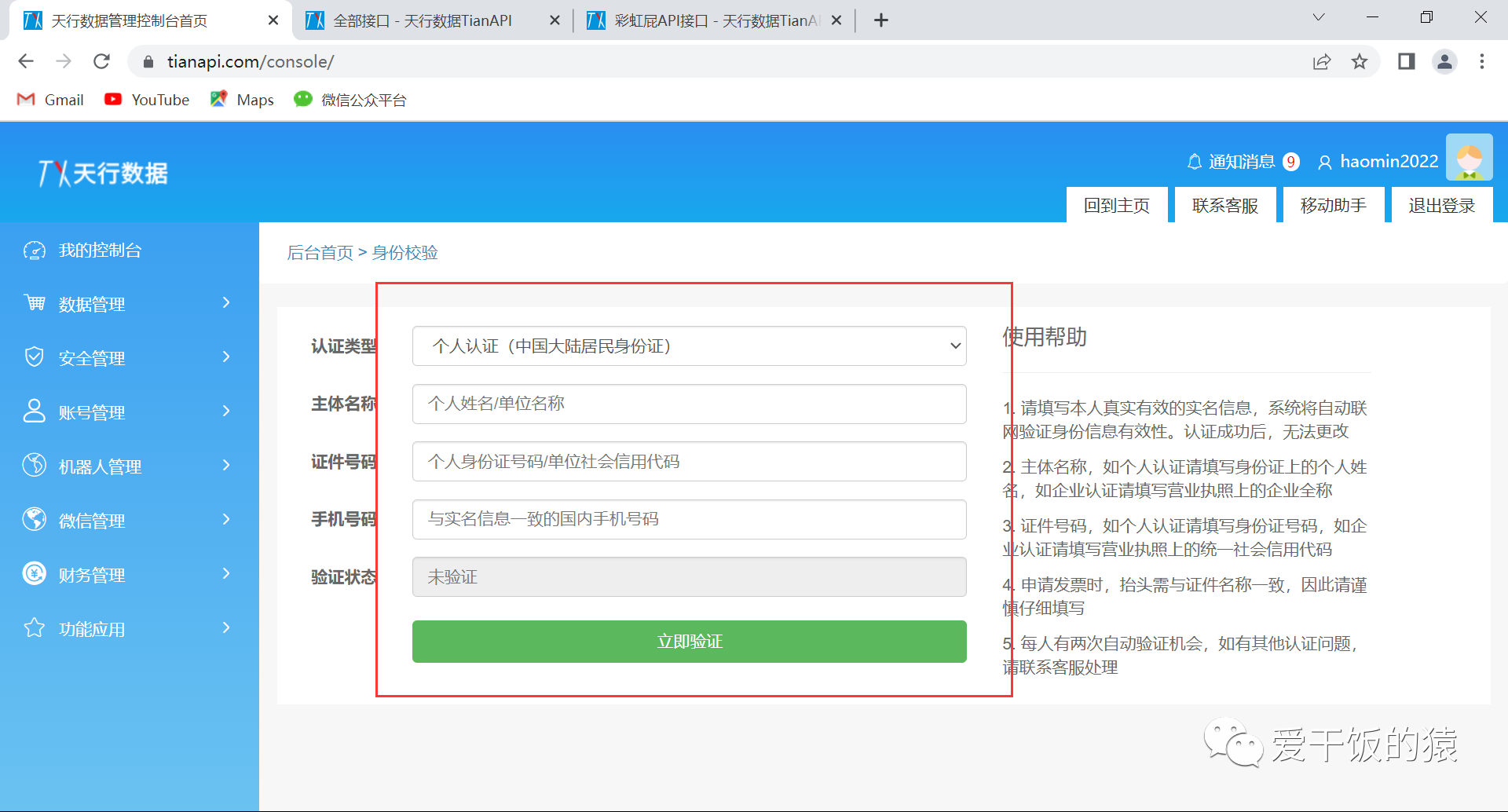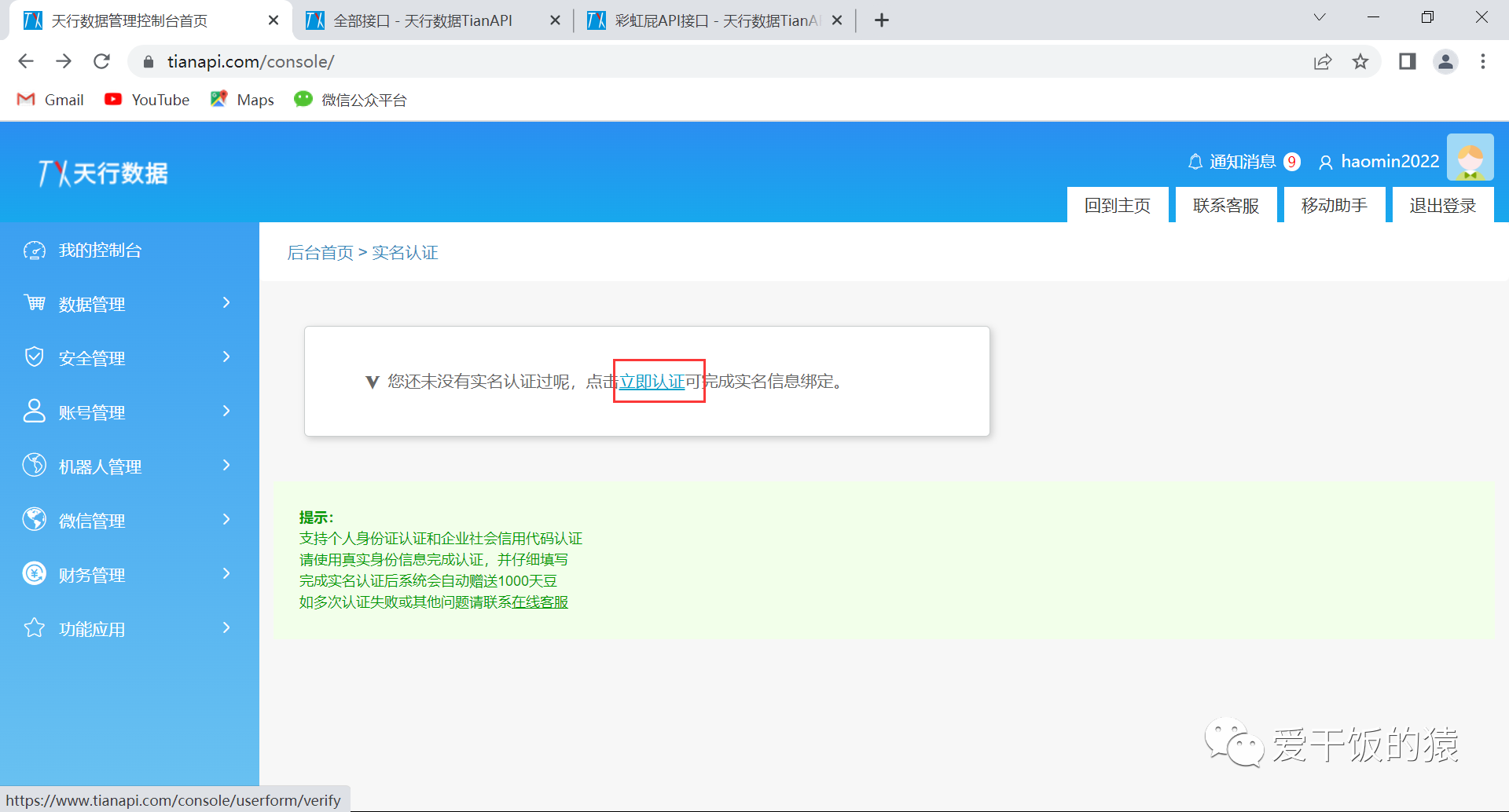 1.1 注册天行数据账号