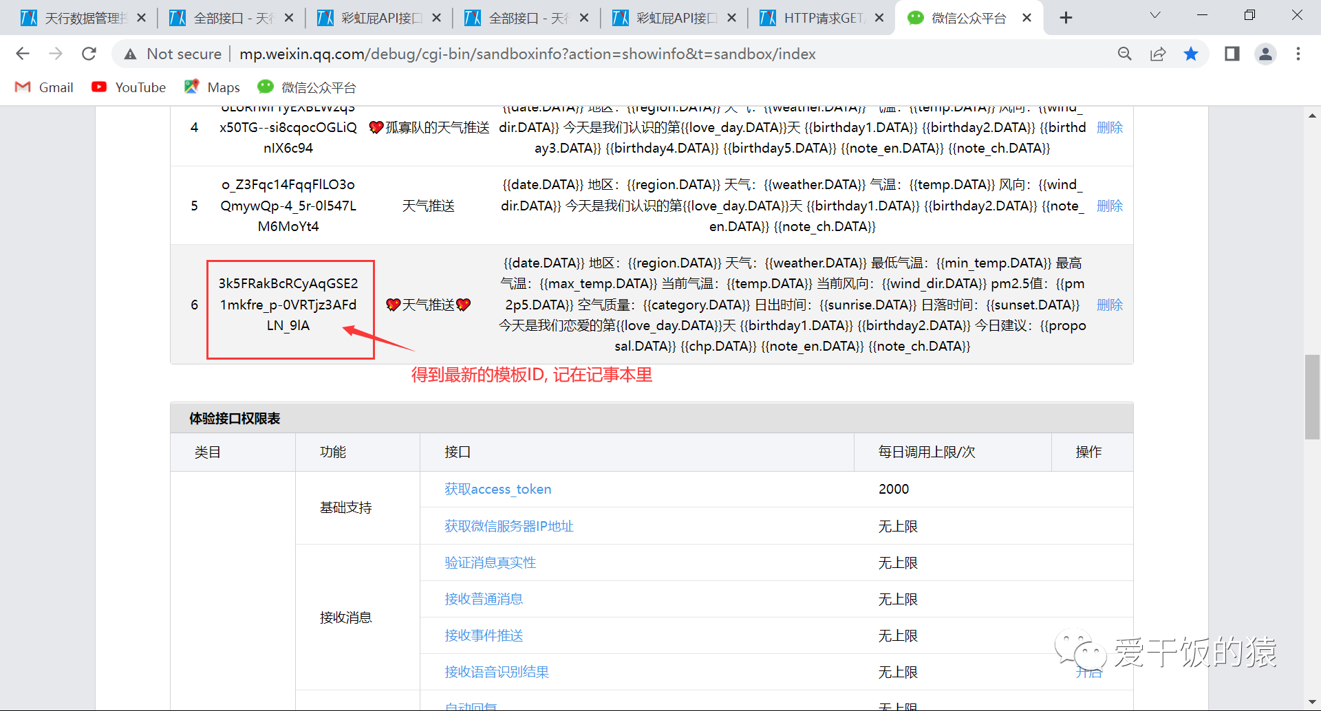 b. 公众号回复:最新模板 得到最新推送模板