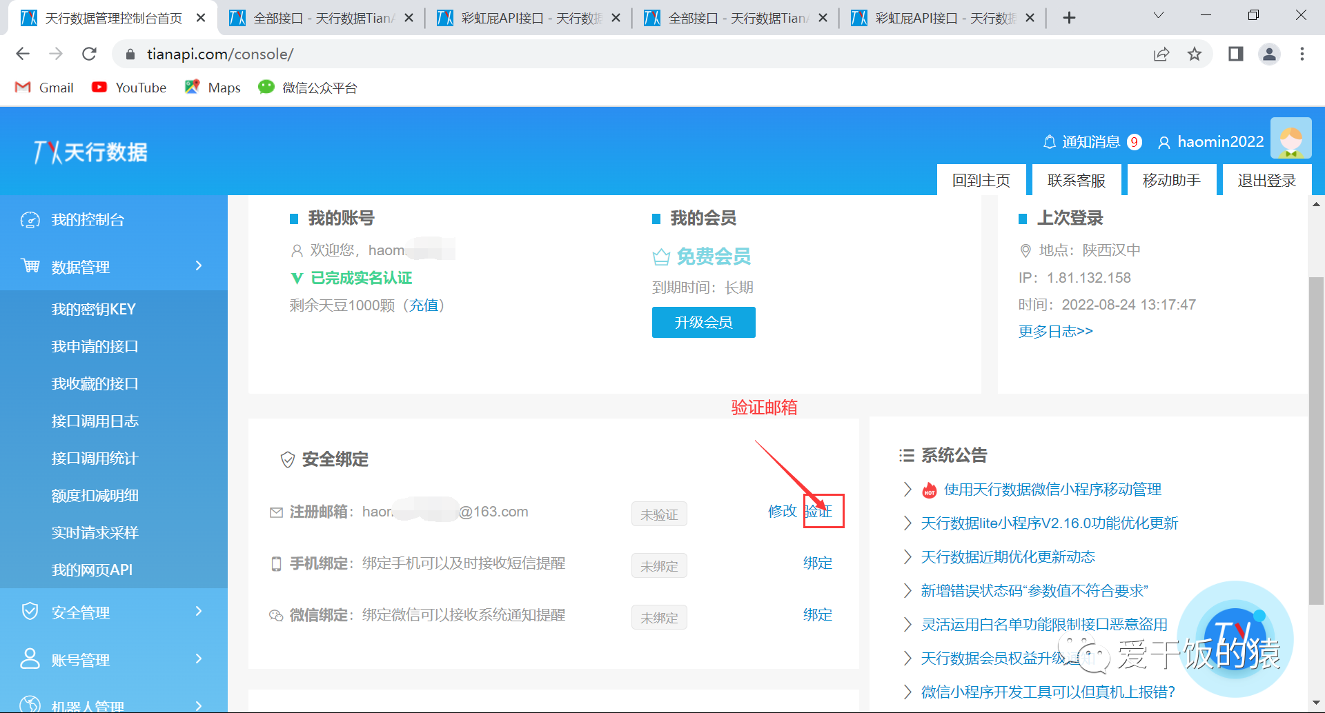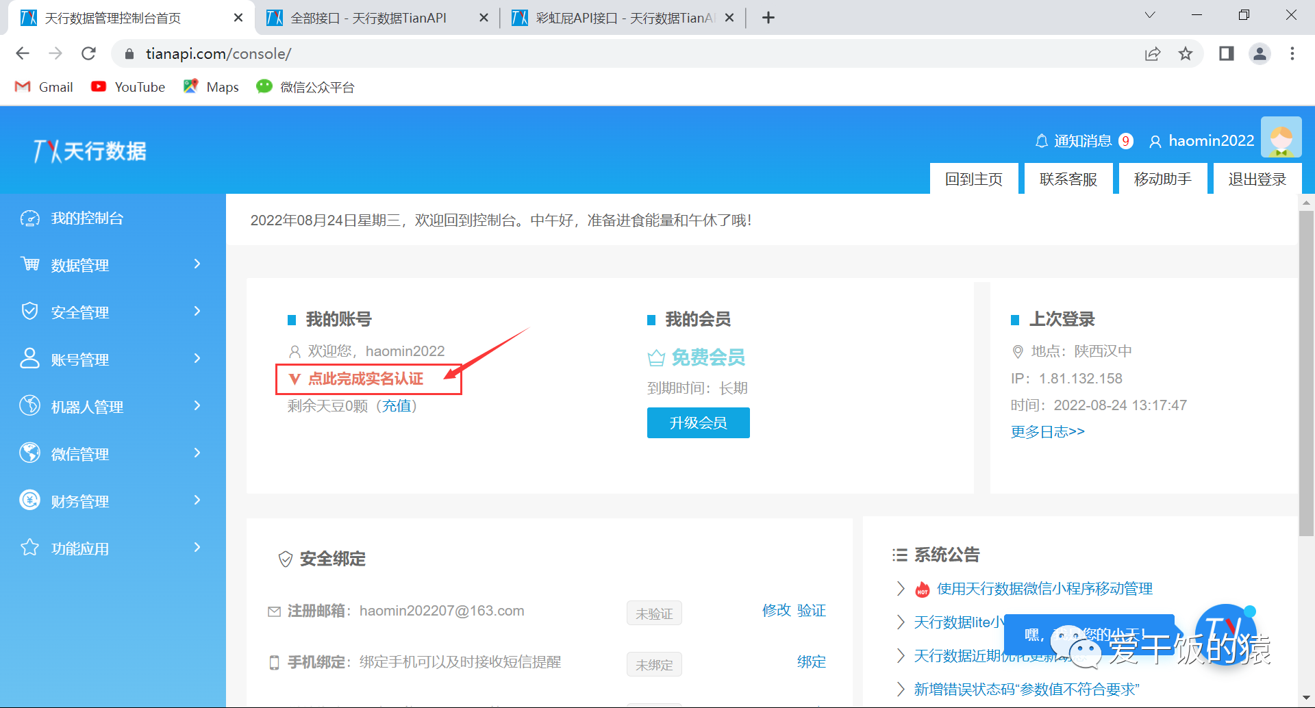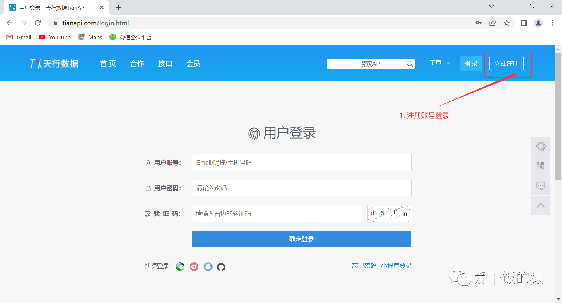 打开网页:https://www.tianapi.com/login.html