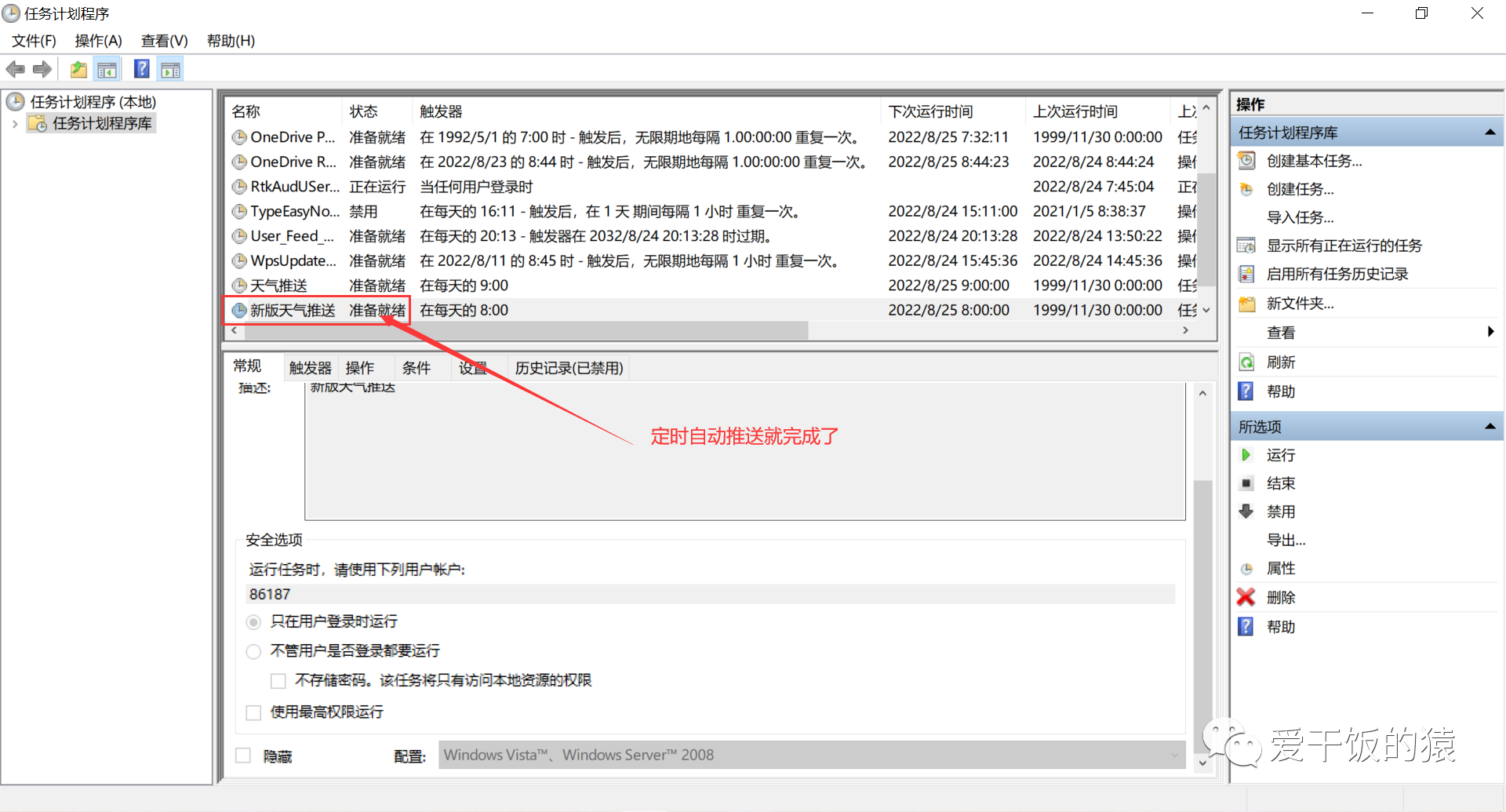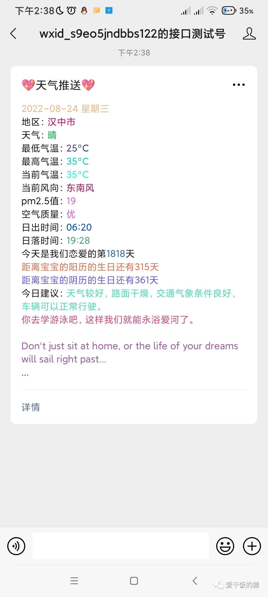 2.2 点确定之后,定时自动推送就完成了,会每天定时自动推送当天天气