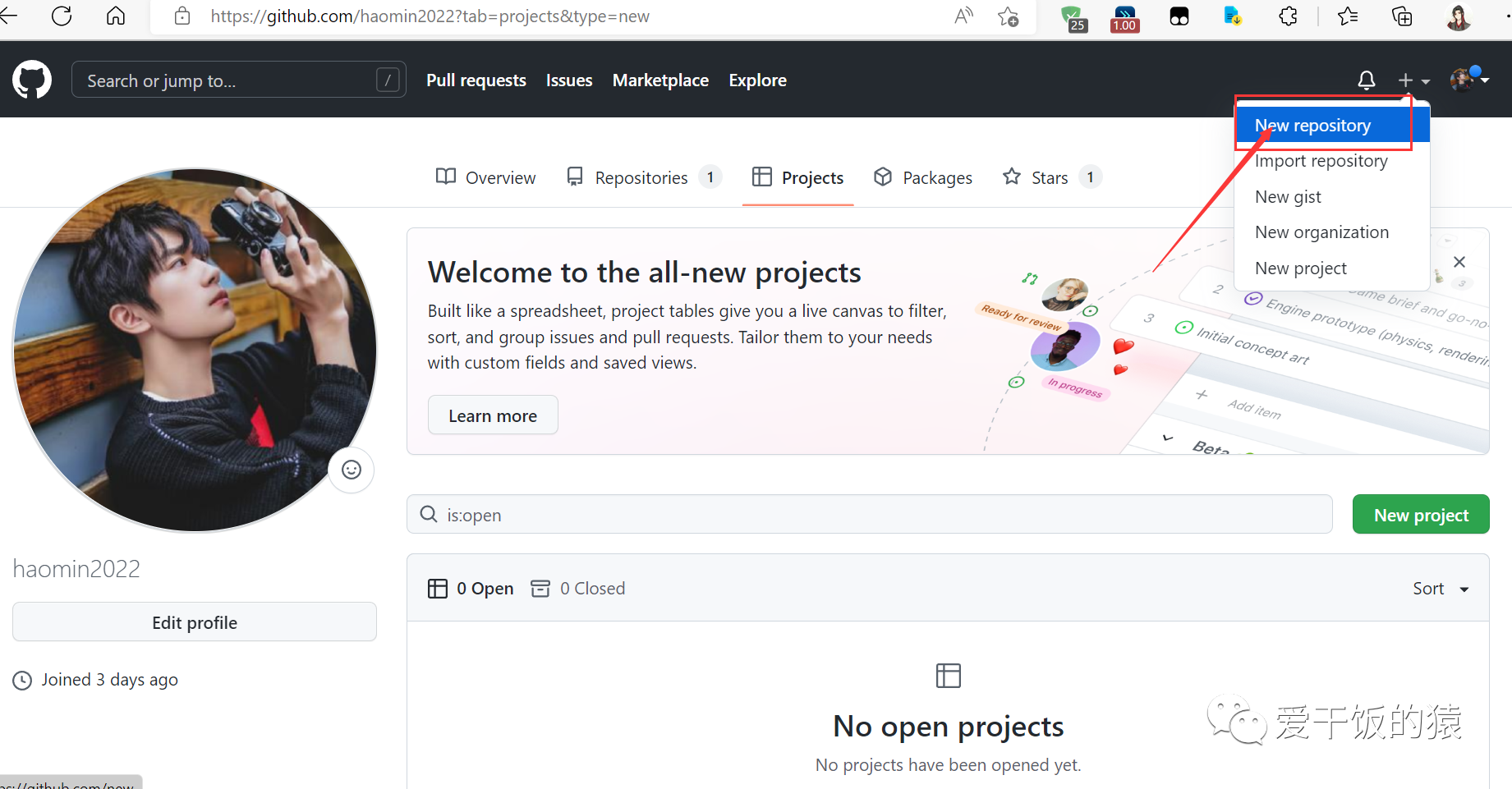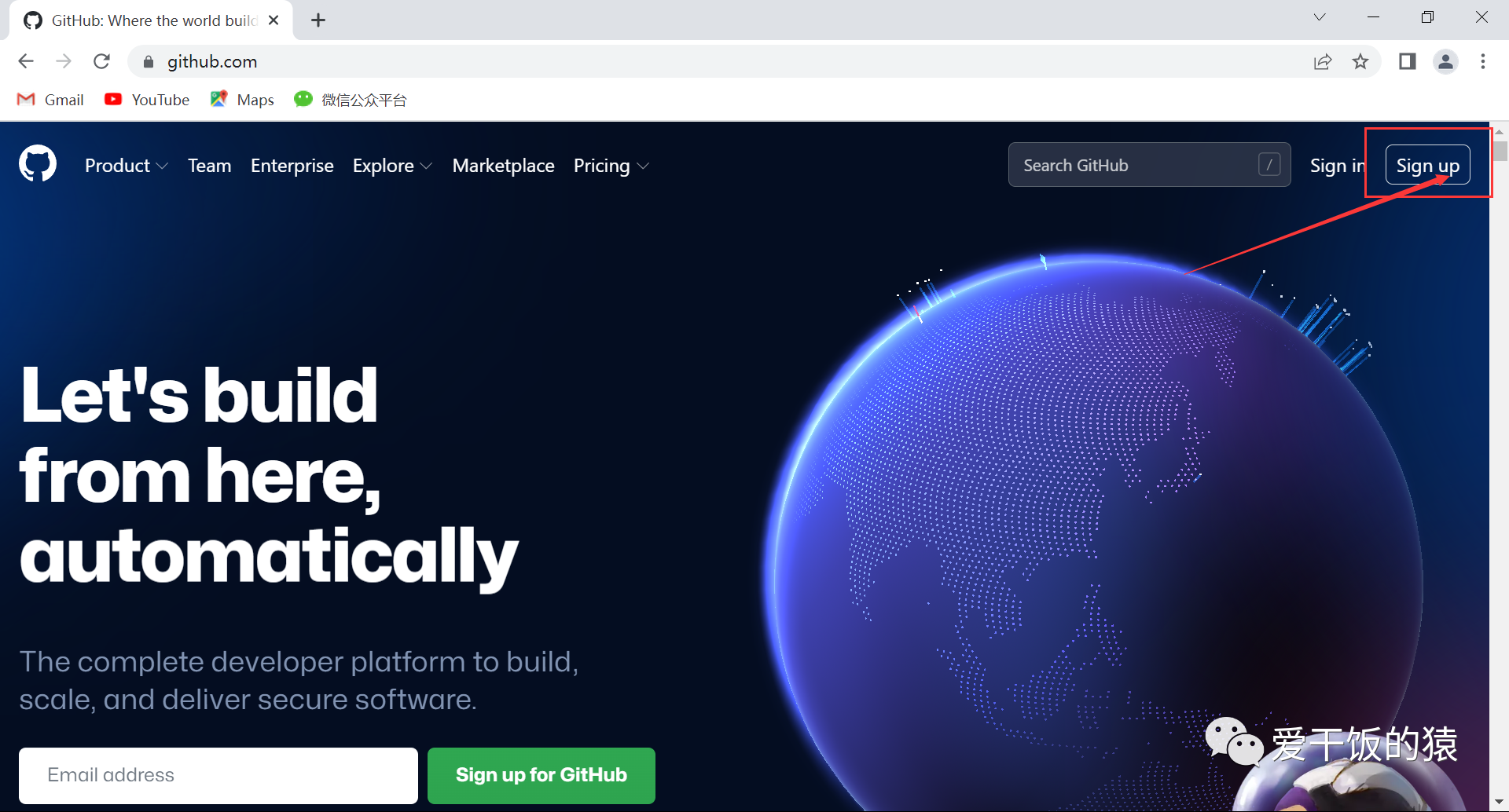 然后就按照提示注册就行,网站访问慢的话搜索微信公众号:爱干饭的猿