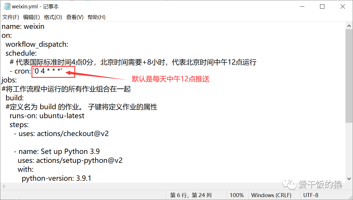 可以用记事本打开 \.github\workflows 中 weixin.yml 文件