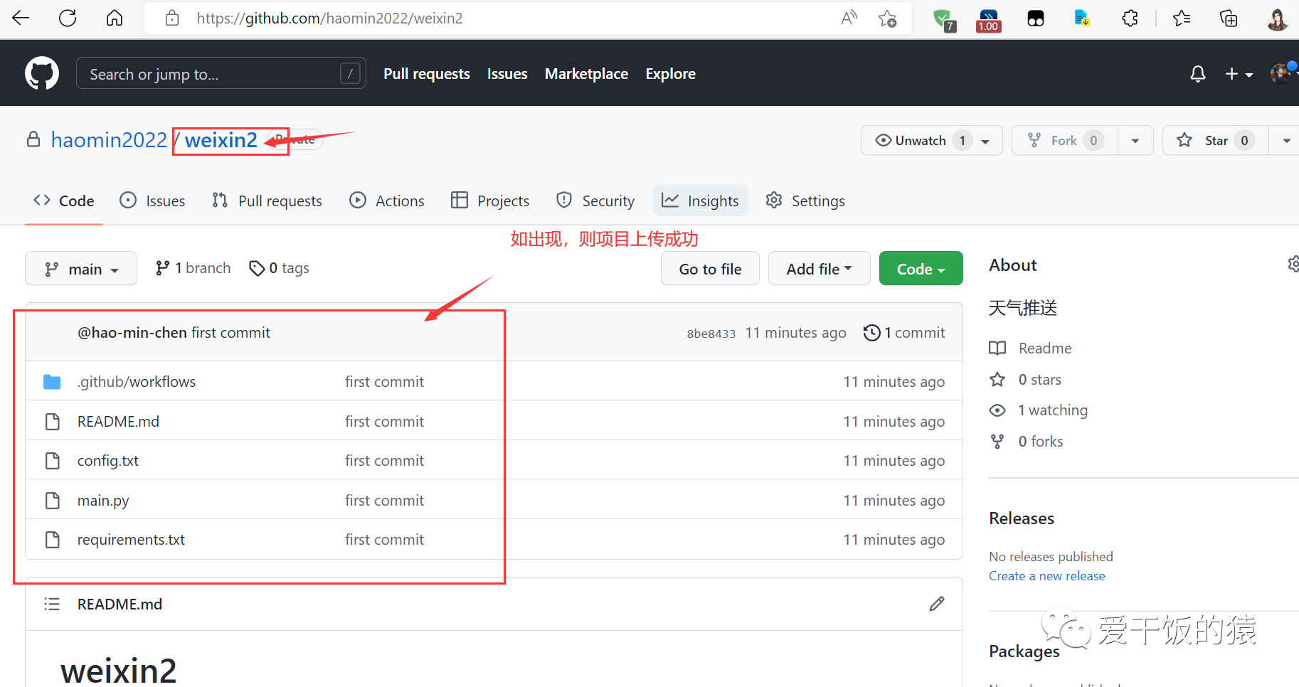 所以按大家的需要,本篇文章分享给大家如何将项目上传github,实现天气问候定时自动推送功能,放心不难的,不管你是用的升级版,还是旧版推送,只要你的config.txt文件配置没有问题,都可以按照如下方法将项目上传github。