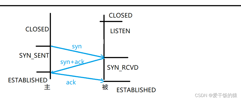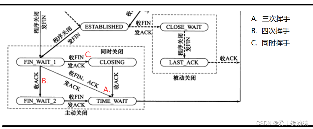A. 主动连接方 断开连接,被动连接方收到后也断开连接(三次挥手)