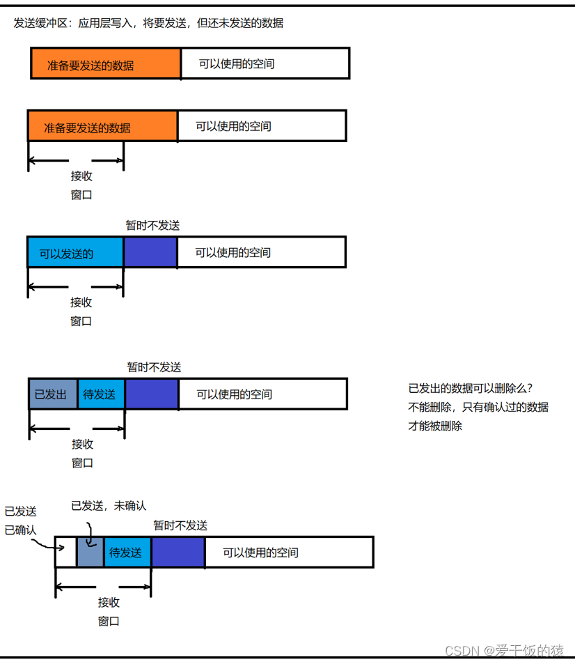 2. 发送量(发送窗口) = f(拥塞窗口,接收窗口) 取两者较小的