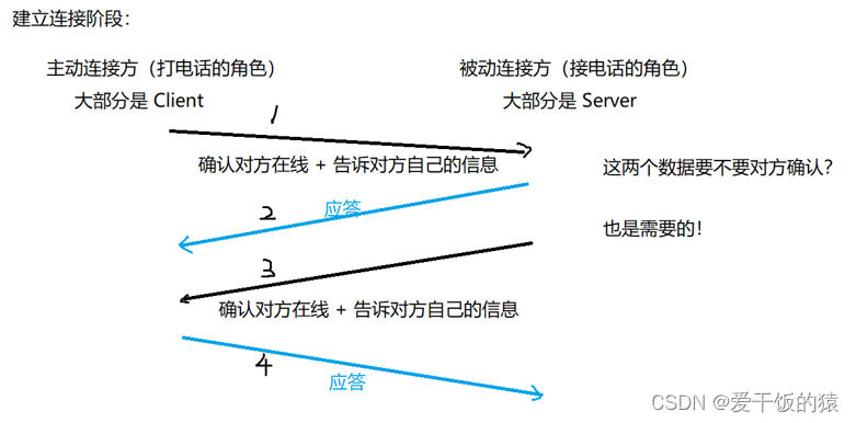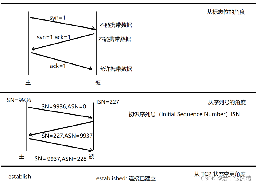确认:(ack + ASN)标志位ack置1.代表起到了确认的作用。需要填写确认序列号(ASN)。