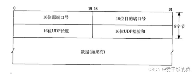 3. 16位UDP长度:表示整个数据报(UDP首部+UDP数据)的最大长度