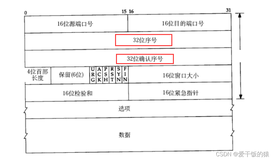 32位确认序列号:填写下一次期望收到的第一个字节的序号