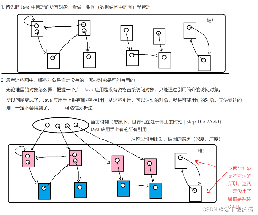 GC:堆内存的管理。堆上的内存是以对象为基本单位进行管理。GC:垃圾对象的回收问题。