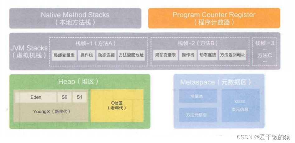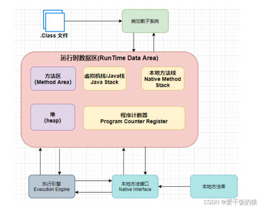 【大家好,我是爱干饭的猿,本文重点介绍JVM 执行流程、JVM 运行时五大数据区、JVM 类加载过程、分类、双亲委派模型、死亡对象的判断算法:引用计数法、可达性分析算法、垃圾回收算法:分代算法。