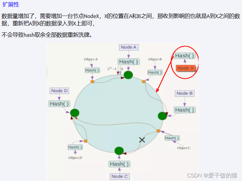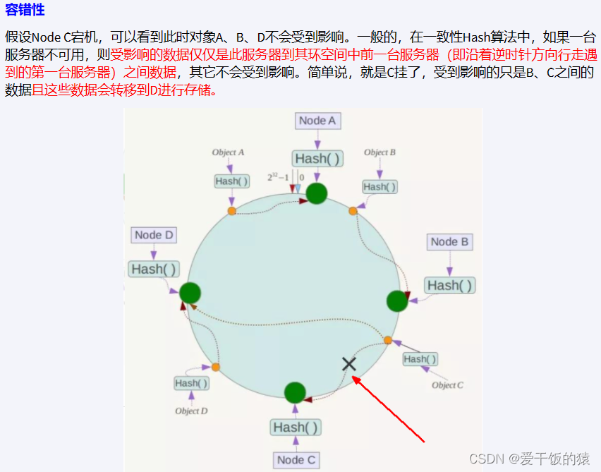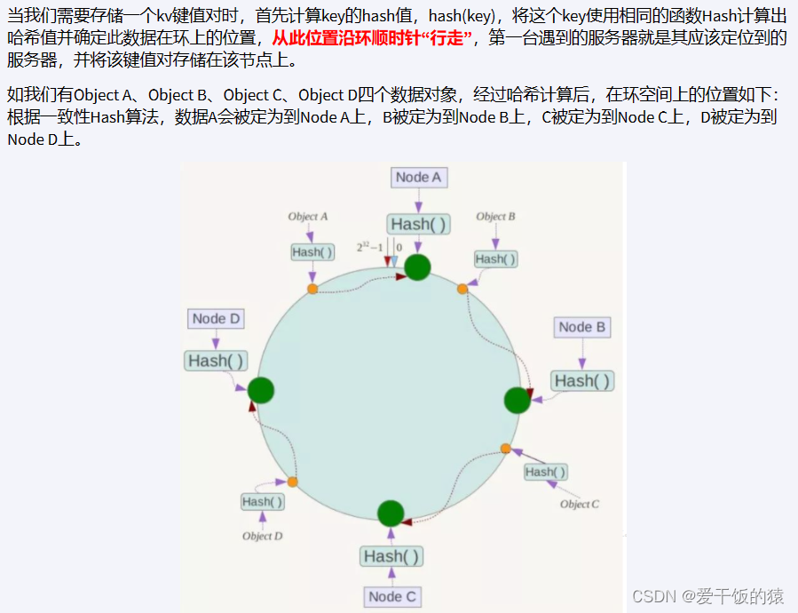 为了在节点数目发生改变时尽可能少的迁移数据,将所有的存储节点排列在收尾相接的Hash环上,每个key在计算Hash后会顺时针找到临近的存储节点存放。 而当有节点加入或退出时仅影响该节点在Hash环上顺时针相邻的后续节点。