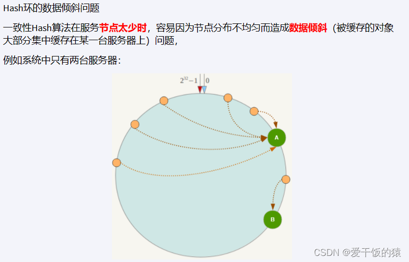 缺点 :数据的分布和节点的位置有关,因为这些节点不是均匀的分布在哈希环上的,所以数据在进行存储时达不到均匀分布的效果。