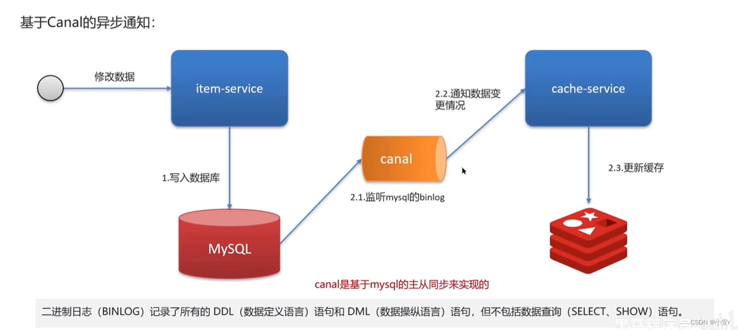 我们当时采用的阿里的canal组件实现数据同步:不需要更改业务代码,部署一个canal服务。