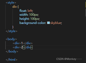 3.最重要的第三点是当父级无高度时,子浮动之后、父级同级的元素就会顶上来。这时我们会清除浮动带来的影响。