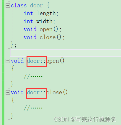 类定义了一个新的作用域,类的所有成员都在类的作用域中。在类体外定义成员时,需要使用 ::