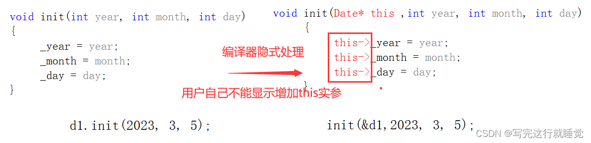 的指针参数,让该指针指向当前对象(函数运行时调用该函数的对象),在函数体中所有“成员变量”