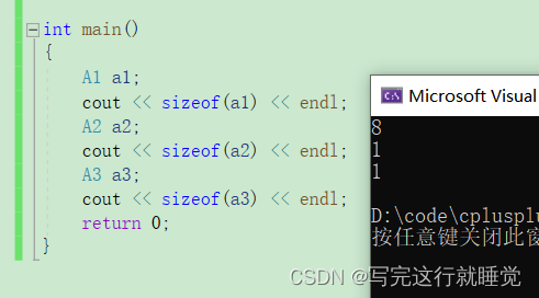 注意空类的大小,空类比较特殊,编译器给了空类一个字节来唯一标识这个类的对象。