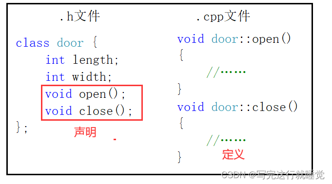 b.类声明放在.h文件中,成员函数定义放在.cpp文件中。