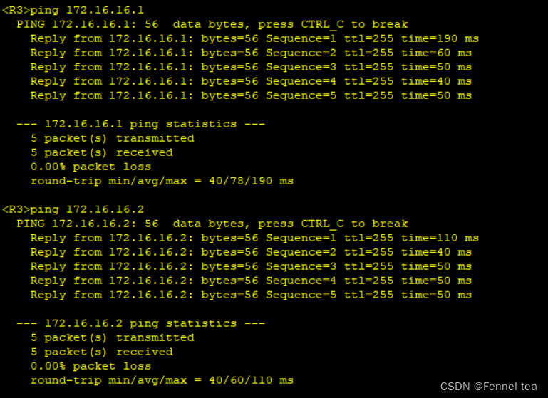 经过测试所有路由上的链路可以ping通