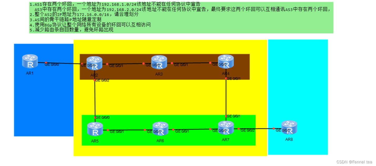 1,AS1存在两个环回,一个地址为192.168.1.0/24该地址不能在任何协议中宣告