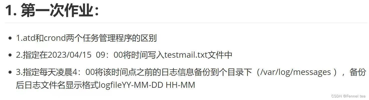 - atd允许用户通过at命令在指定的时间执行一次性任务,而crond通过cron配置文件(通常是/etc/crontab)来定期执行任务。