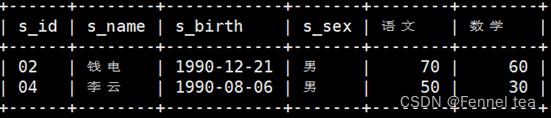 2、查询平均成绩大于等于60分的同学的学生编号和学生姓名和平均成绩