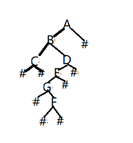 首先:通过前序遍历构建二叉树,当接收到"#"返回NULL;不是"#"构建根,再构造左子树.右子树,其具体如图示意: