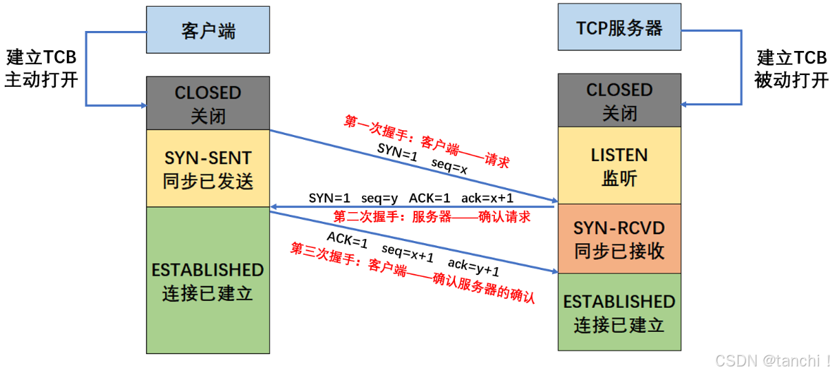 相信对于下述图表的内容,相信大家都已经背的滚瓜烂熟了。但是当我背完之后,其实我对他具体某一部分我其实并不理解,例如为什么需要三次握手,两次不行吗,类似的这种问题一直困扰着我,今天花费了一定的时间,也算是终于对这个部分有自己的理解,故写下本博客来记录学习,并且希望对大家理解有所帮助!好了,话不多说,我们来发车!