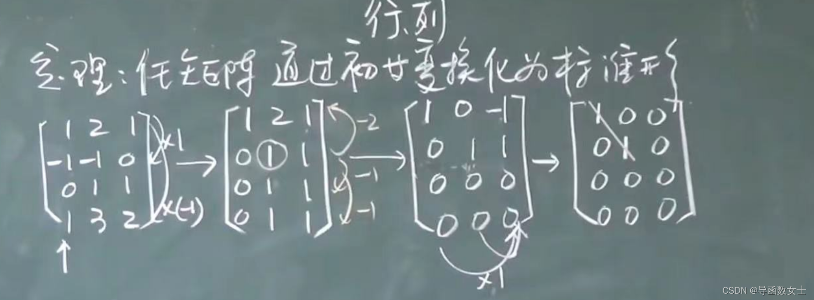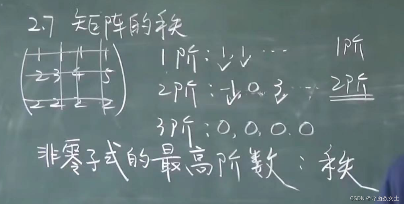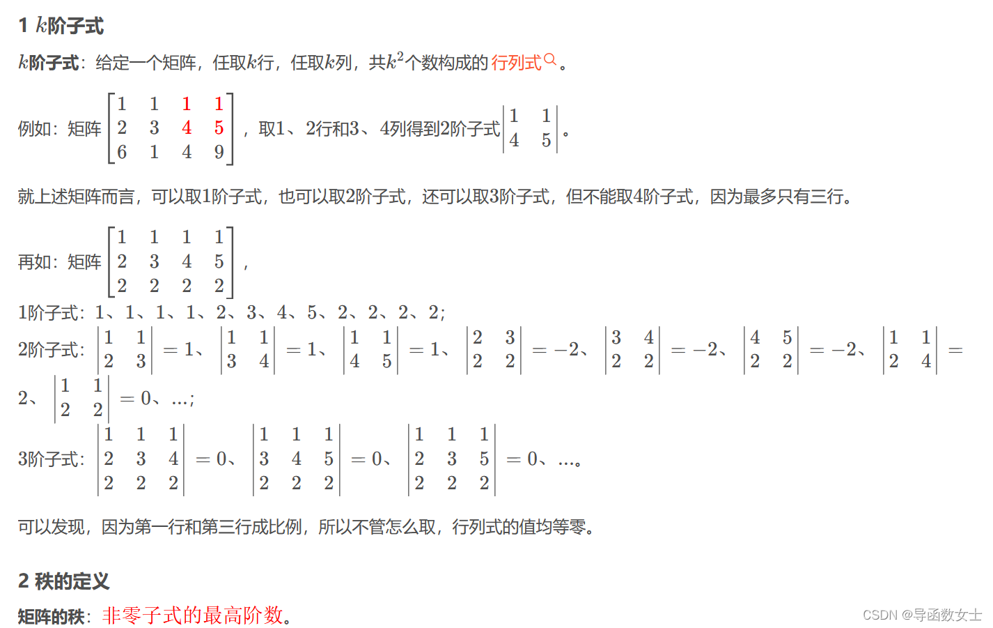定义:非零子式的最高阶数 (初等行/列变化不改变矩阵的秩)