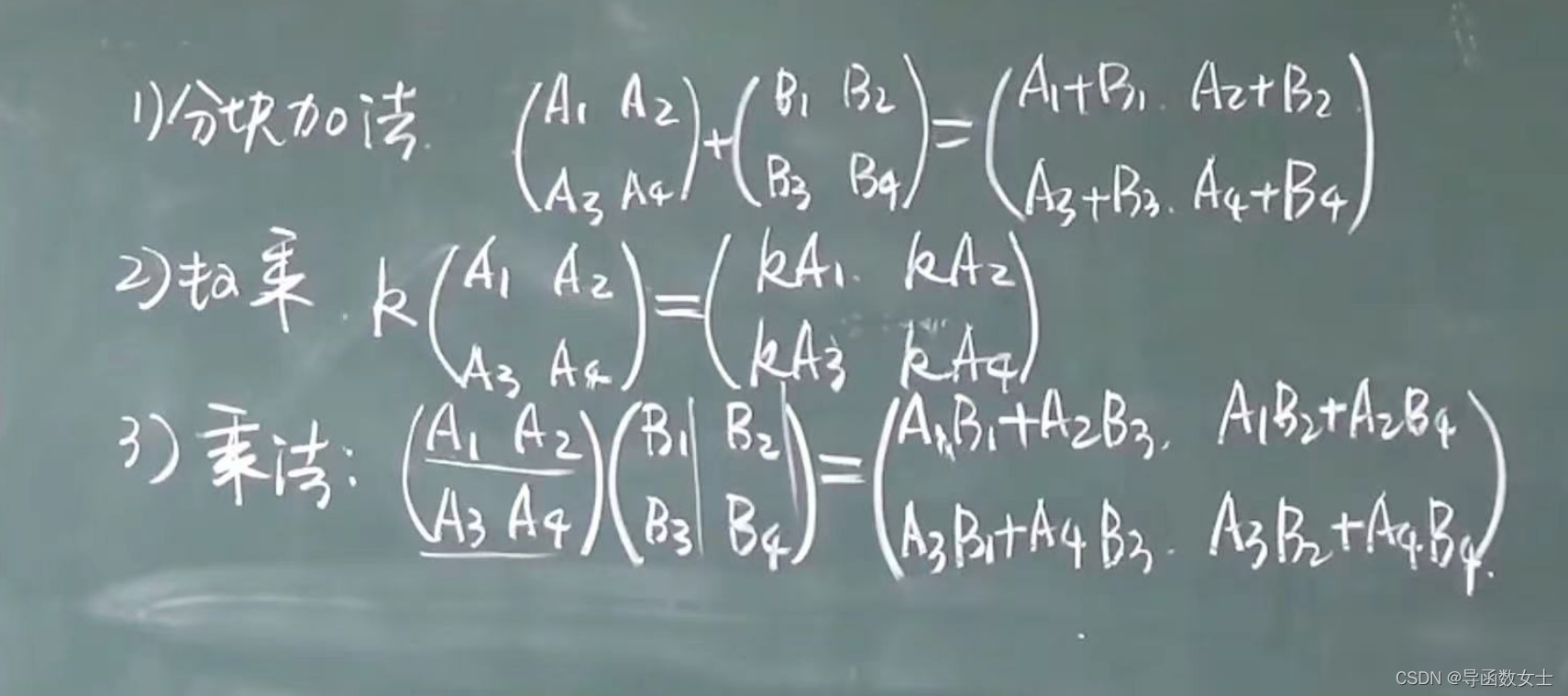 5.2 分块矩阵加法、数乘、乘法 注意乘法需要矩阵同型