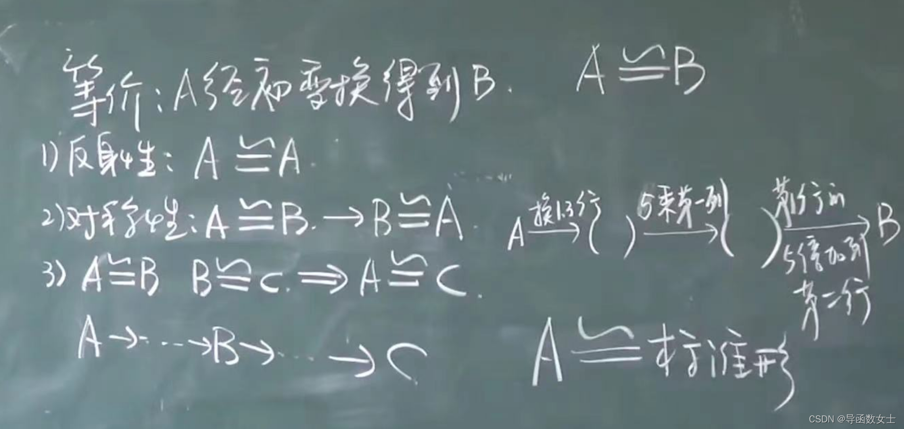 定义:对E做一次初等变换行/列得到的矩阵叫初等方阵。