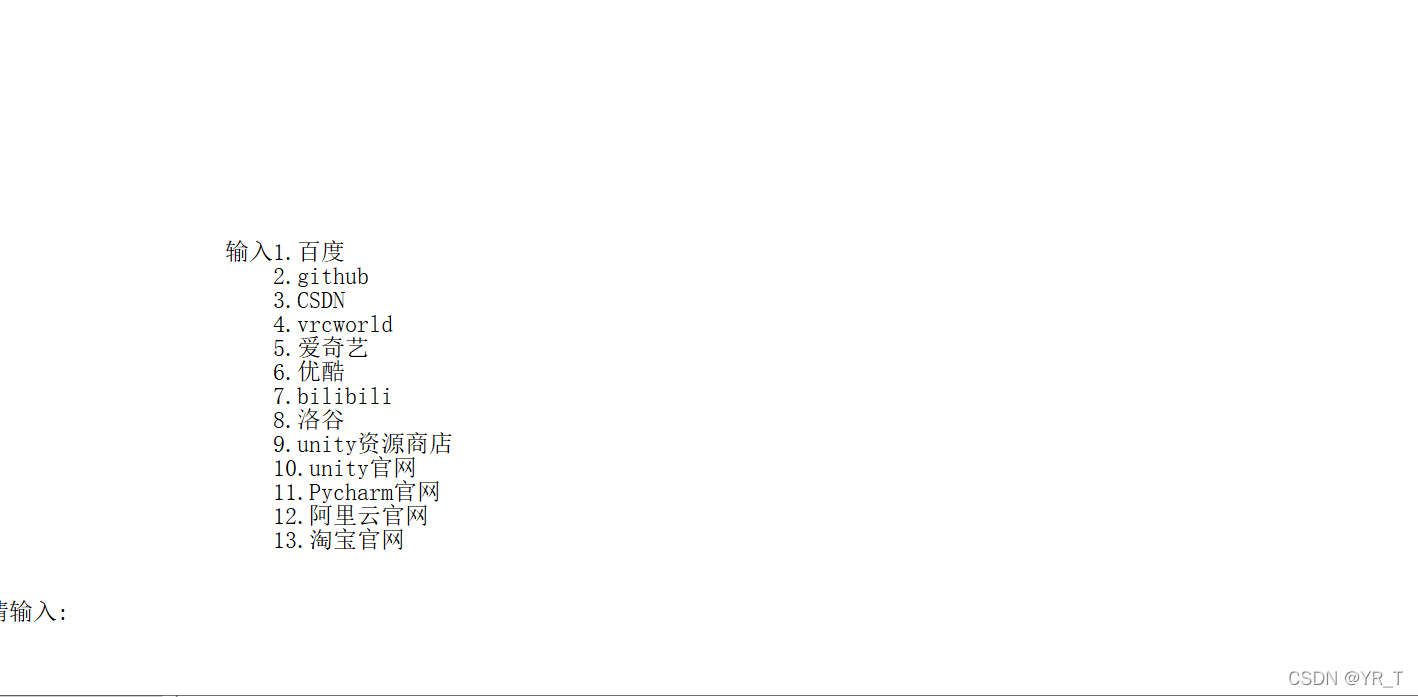 cout<<"输入1.百度"<<endl;// https://www.baidu.com