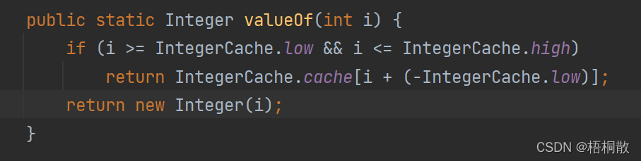 首先来看 valueOf 方法,如果 i 在 low 到 high 之间,是从数组里返回一个数,而不是创建一个新的对象,在这个范围外,才返回一个新的对象。 而这个范围是 -128 到 127.