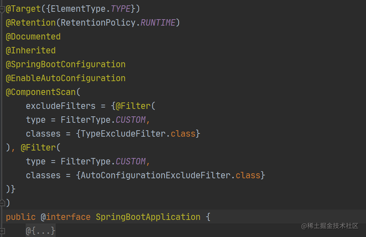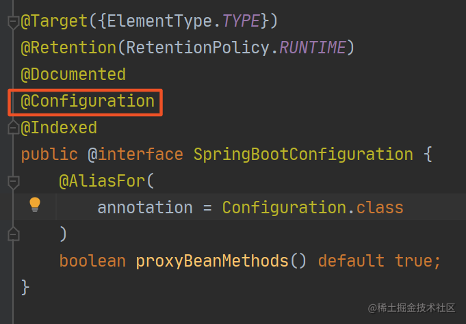 @SpringBootConfiguration 注解:我们再次点进去看这个注解,其实它就是一个@Configuration 注解。