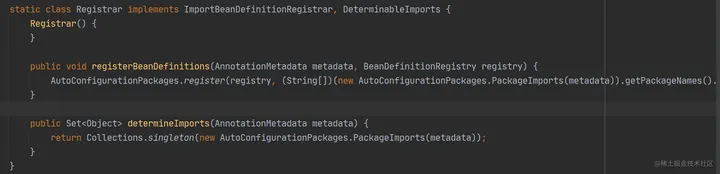 再进入这个类查看,它其实是一个内部类,看代码的大概意思就是读取到我们在最外层的 @SpringBootApplication 注解中配置的扫描路径(没有配置则默认当前包下),然后把扫描路径下面的Bean注册到容器中;