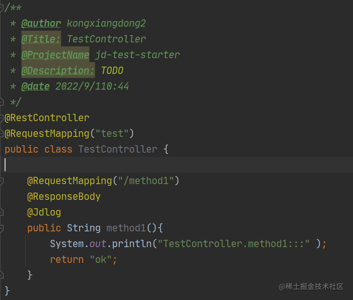 增加一个http 访问的方法,标注上@Jdlog 注解