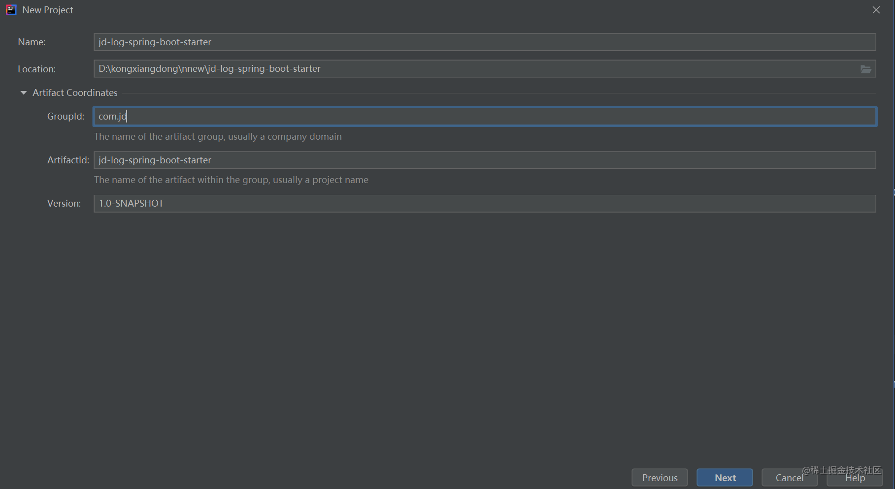 首先新建一个maven 工程,名称定义为jd-log-spring-boot-starter