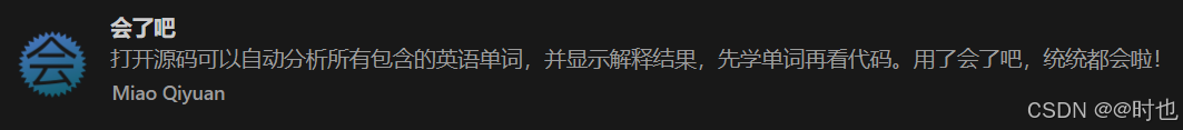 安装会了吧插件后,vscode界面最左侧会出现一个"会"的图标,点击该图标就可以查看编辑页面中你不会的英文单词了。