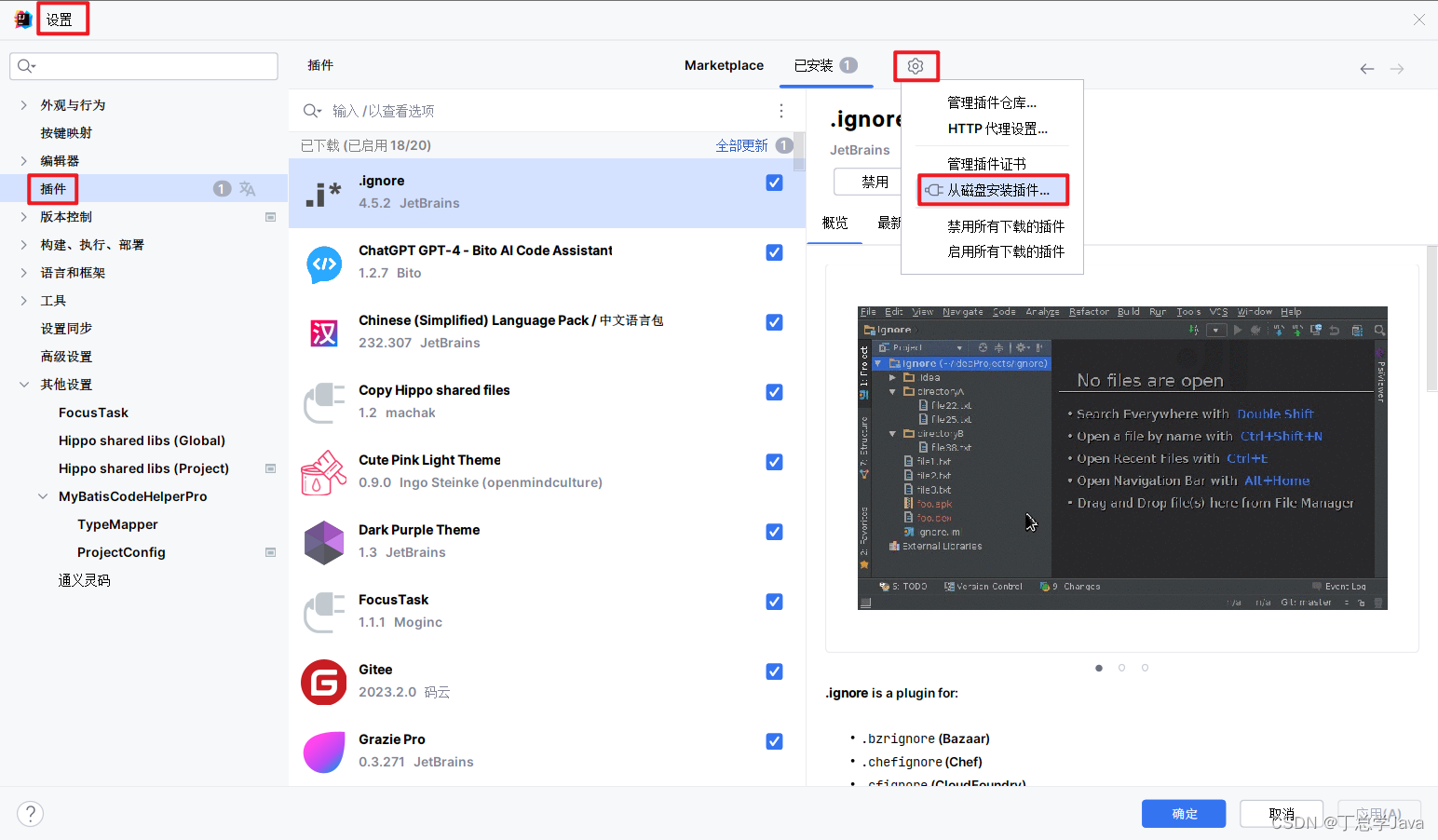 Idea如何从磁盘中应用 下载好的插件流程,安装zip压缩包。