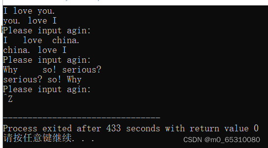 实例:输入:I love china. 输出china. love I