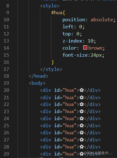运行效果部分如下:(花随着鼠标的移动而移动)
