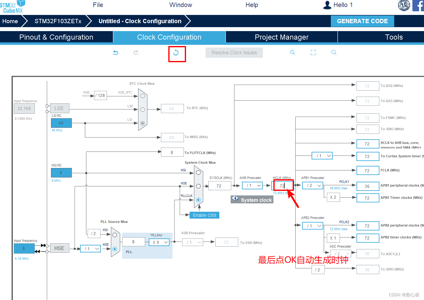 系统时钟——72MHZ。