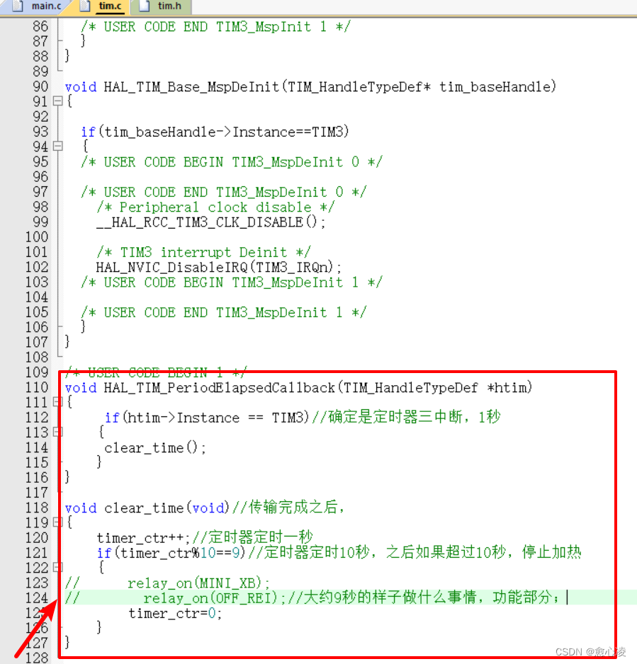 if(timer_ctr%10==9)//定时器定时10秒,之后如果超过10秒,停止加热