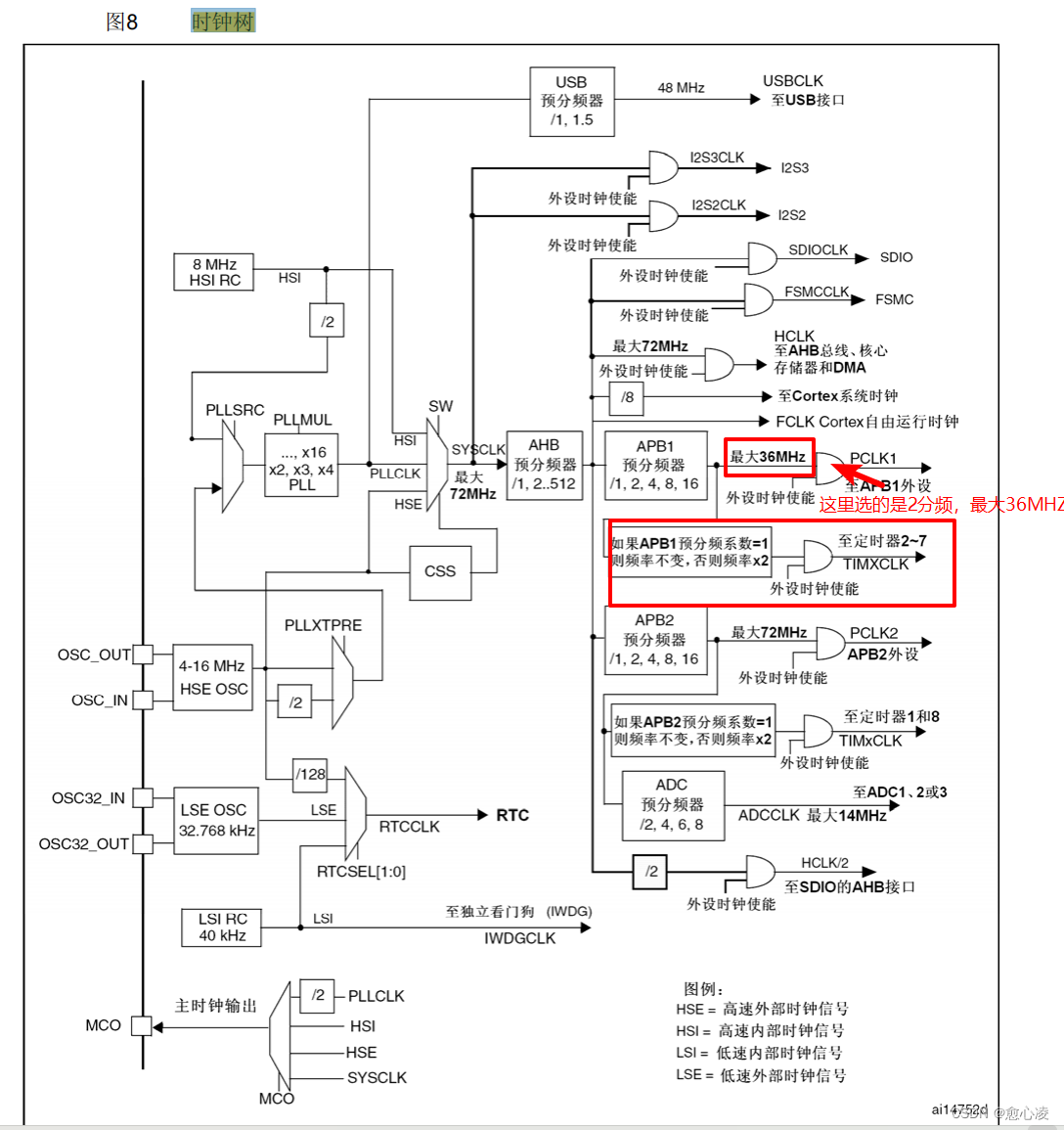 总线分频是2分频,因此AP1总线时钟是36MHZ。