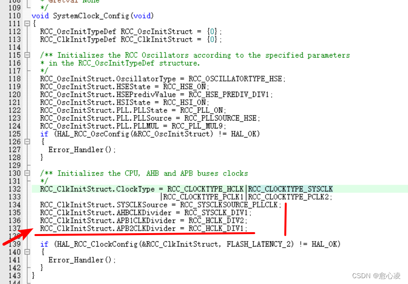 计算过程知道了,现在我们来看代码HAL配置部分的时钟如何查看系统和总线时钟频率。