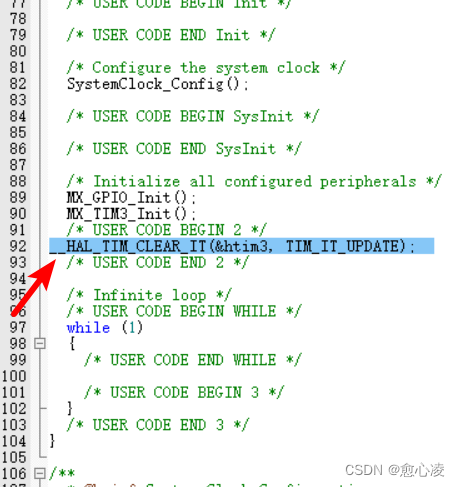 __HAL_TIM_CLEAR_IT(&htim3, TIM_IT_UPDATE); //清空寄存器