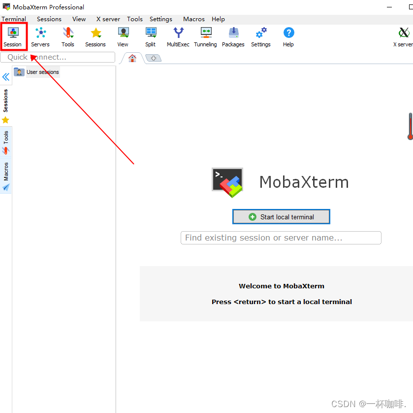 打开MoBaXterm,点击session