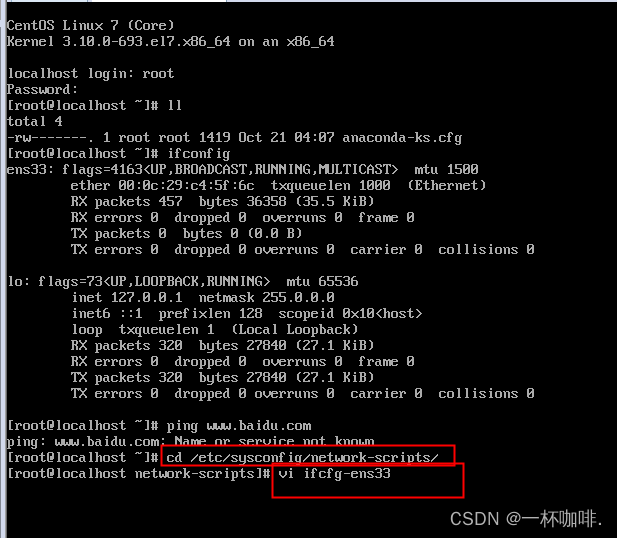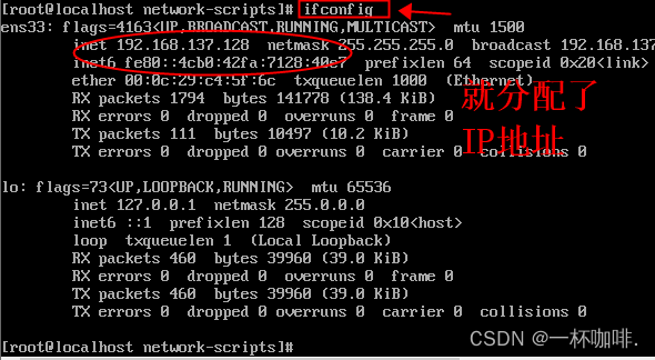 依次输入:cd /etc/sysconfig/network-scripts/