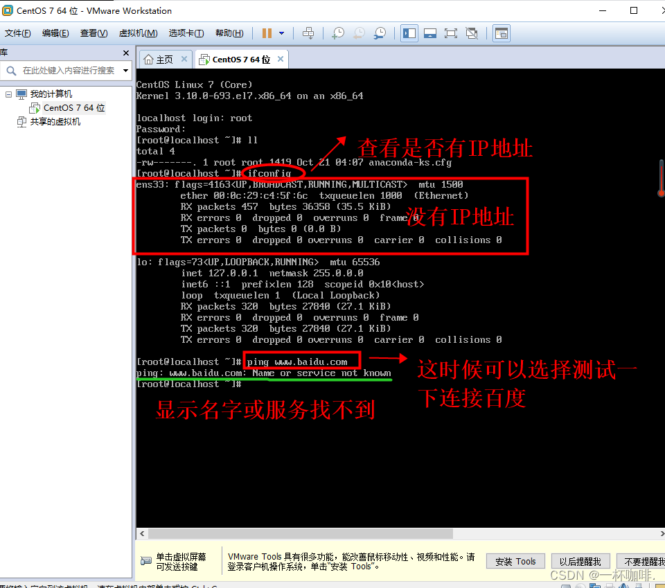 Centos安装完毕之后需要查看IP地址 输入命令 if config